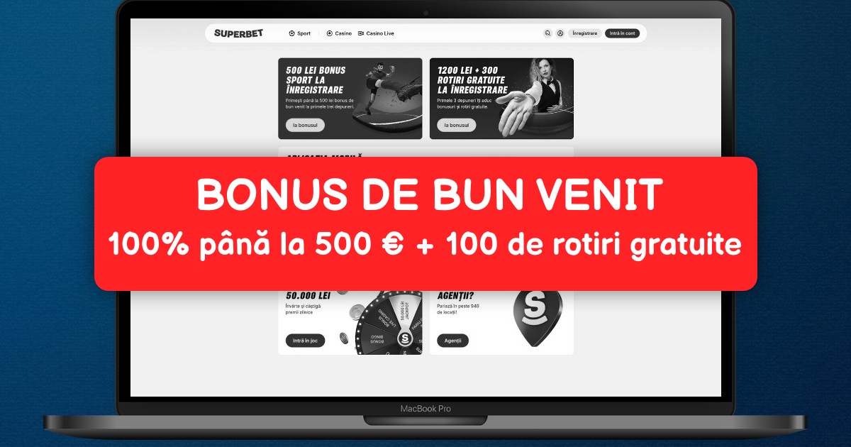 Superbet propune utilizatorilor un bonus de bun venit de până la 1200 RON, plus 300 rotiri gratuite la cazinou, disponibile cu un depozit minim de 20 RON. Rulajul pentru retragerea acestor bonusuri este de 35x, ceea ce face ca utilizatorii să se bucure de bani reali într-un timp scurt.